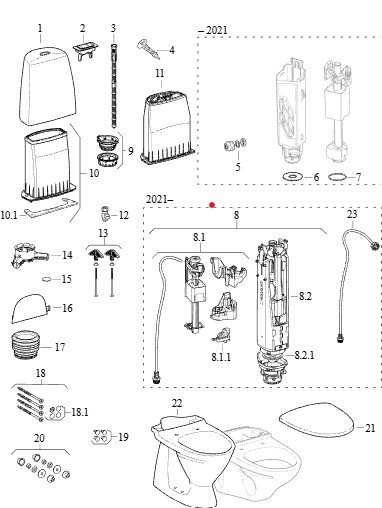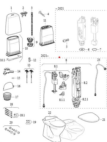 Indercisterne komplet m/armatur, Uden trykknap. Trykknap skal tilkøbes VVS.nr. 609446684