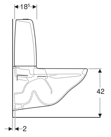 Toilet med hel cisternekappe for nemmere rengøring og Fresh WC, hygiejnisk doseringsløsning i skylleknappen, som standard. Væghængt skål med på bygget cisterne, som er nem at gøre ren.