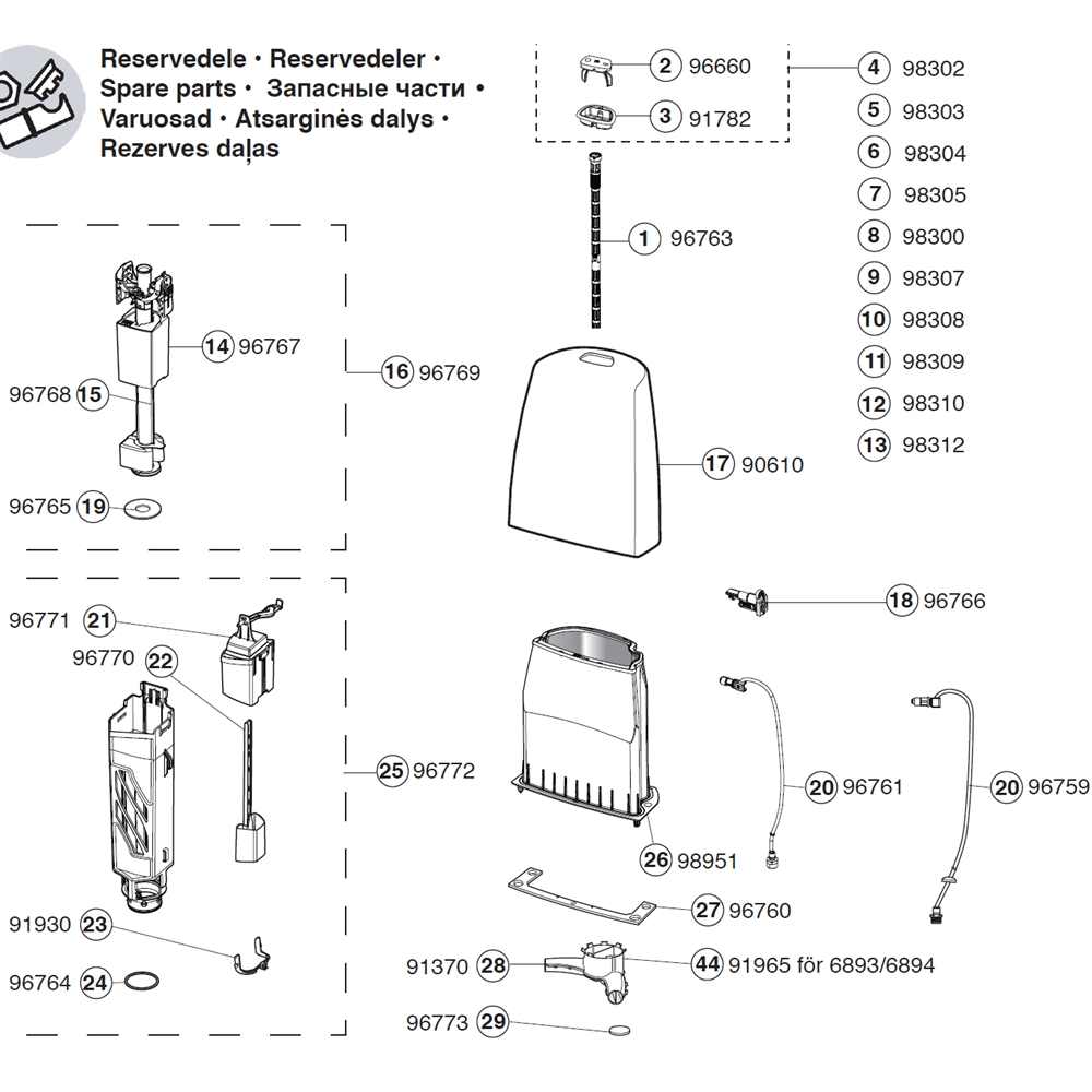 IFÖ Sign toilet, Reservedelsoversigt.