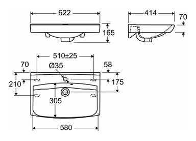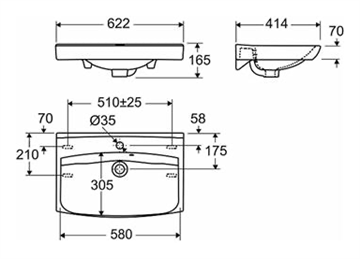 Ifö Spira Compact håndvask, 62,2x41,4 cm, hvid t/bolte