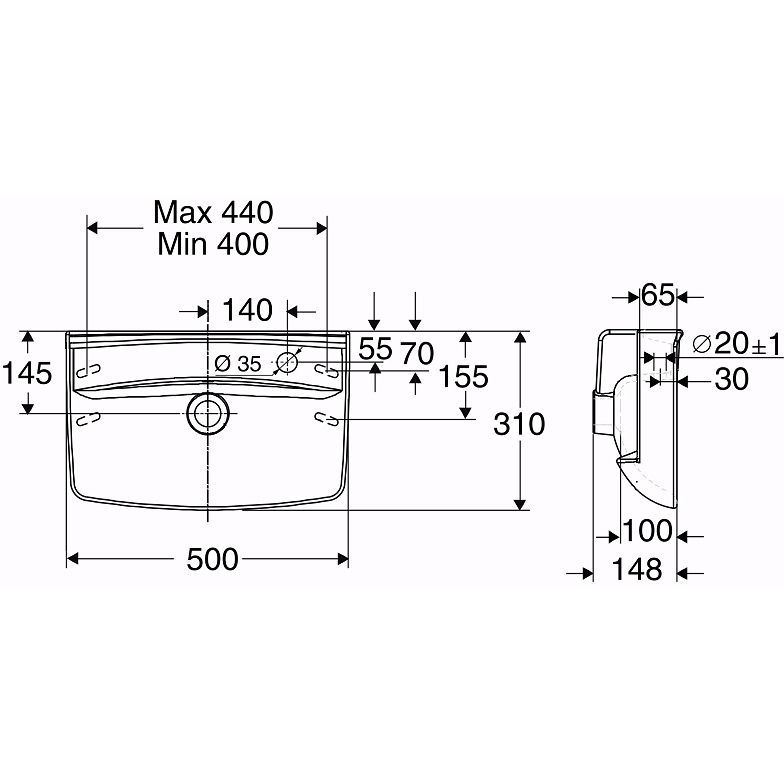 Ifö Spira Håndvask 50 cm, hanehul højre uden overløb