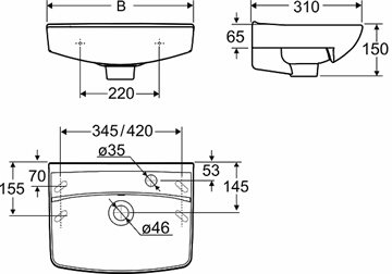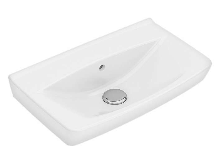 Lille håndvask med afsætningsplads og forhøjet bagkant. Monteres med hægte, bæringer eller på baderumsmøbel. Håndvasken er med Ifös rengøringsvenlige glasur Ifö Clean.