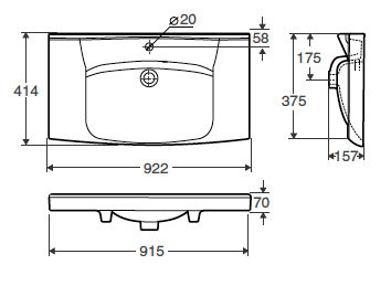 Håndvask med afsætningsplads på bagerste del af vasken, 90 cm, compact.
