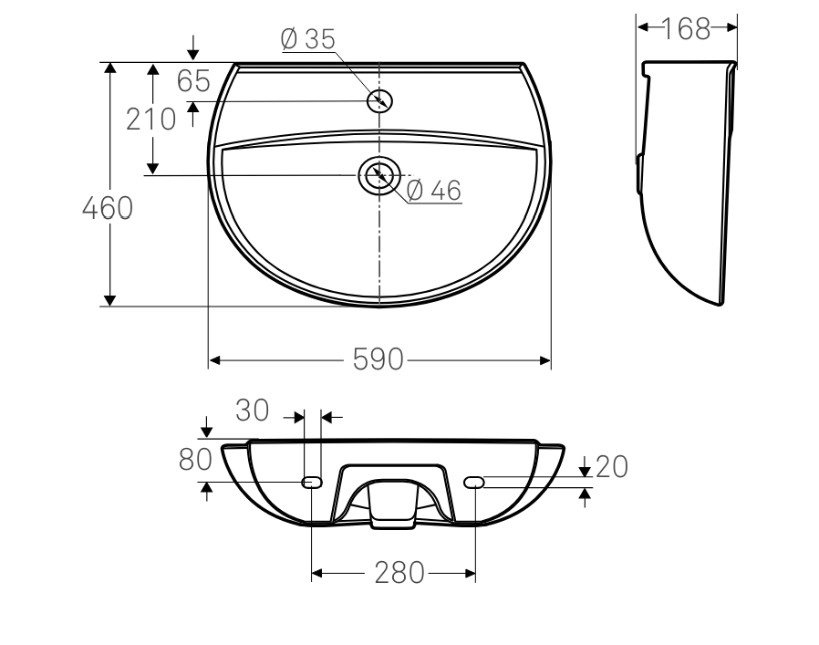 Ifö Spira håndvask buet 590 x 460 mm med hanehul uden overløb