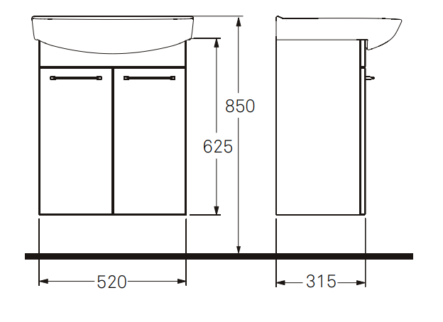 Mål H: 700 B: 570 D: 435 skabsdybde: 315