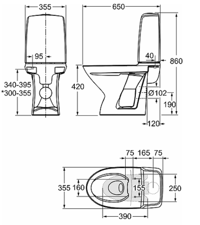IFÖ Spira 6262 gulvstående toilet universallås og skjult afløb, fastgørelse med silikonefugemasse, Rimfree