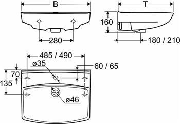 Ifö Spira vask 570 uden hanehul - Bredde: 430 mm