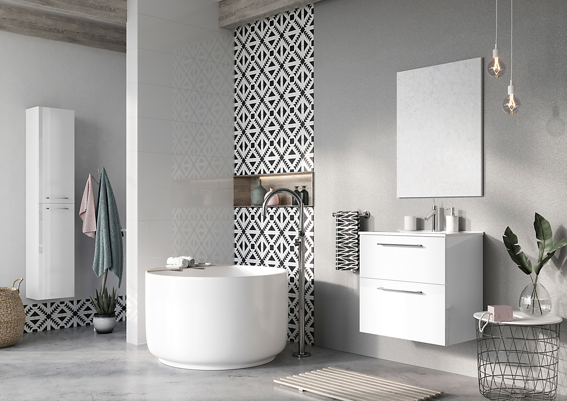 IMAGE 90 CM Møbelskab & håndvask, hvid højglans