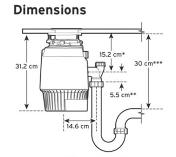 NB: Tilkøb af speciel køkkenkværnsvandlås (BB-300301 til enkeltkummevask) for optimal montering anbefales - findes også til dobbelkummevask (BB-300302)