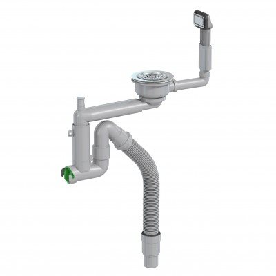 Intra Afløbssæt til enkeltkumme med manuel strainer, firkantet overløb og vandlås