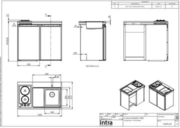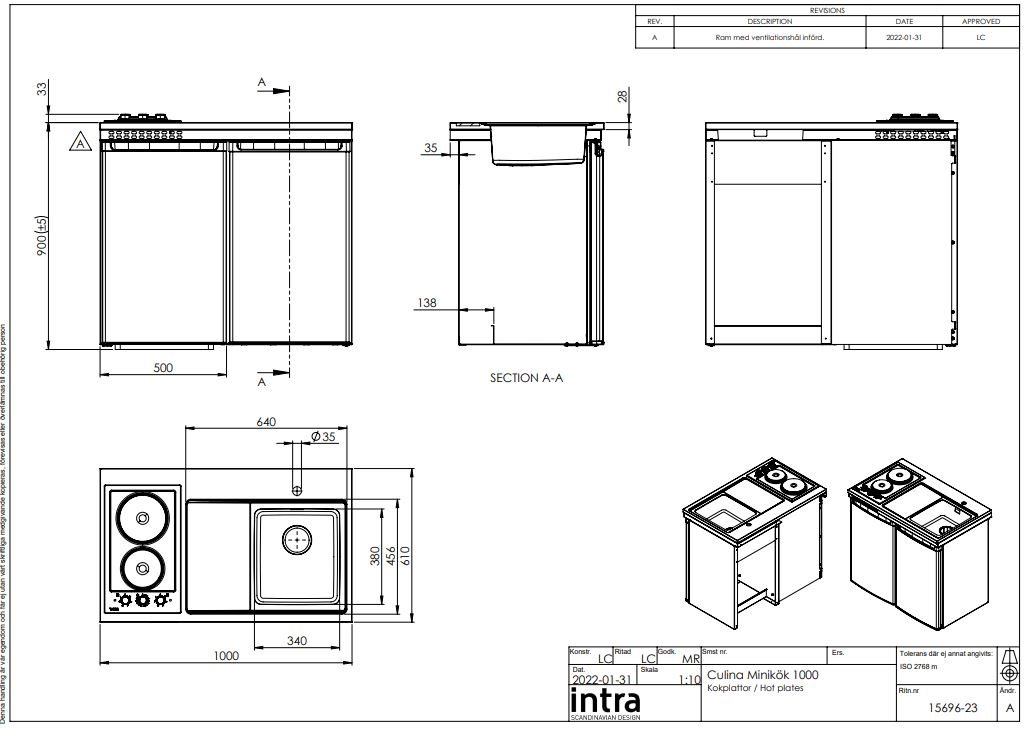 Intra Culina minikøkken 1000x610 mm m/2 kogeplader, køleskab og vask til venstre