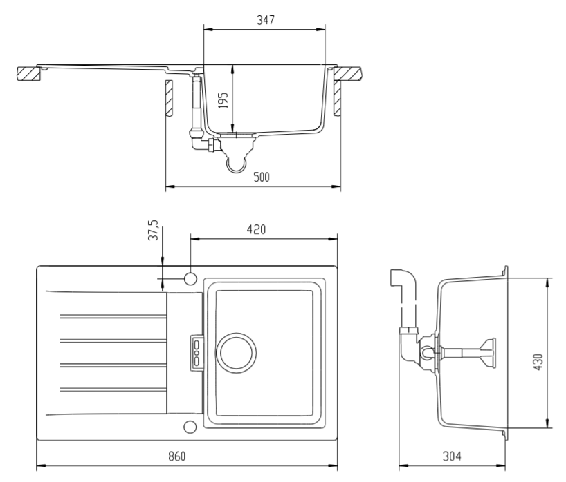 Intra granit primus hvid køkkenvask m/afløbsbakke - 860 mm