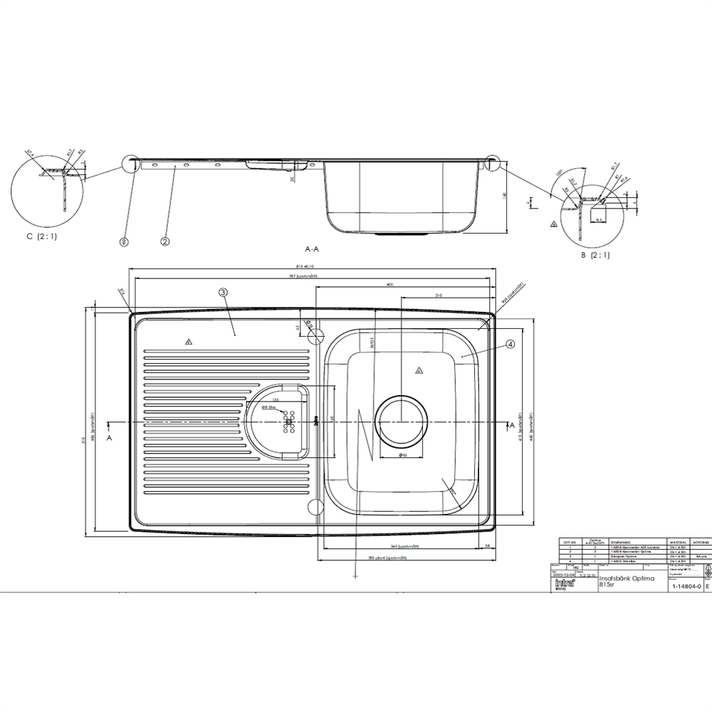 Vendbar enkeltvask med ekstra afløb på rillefeltet.