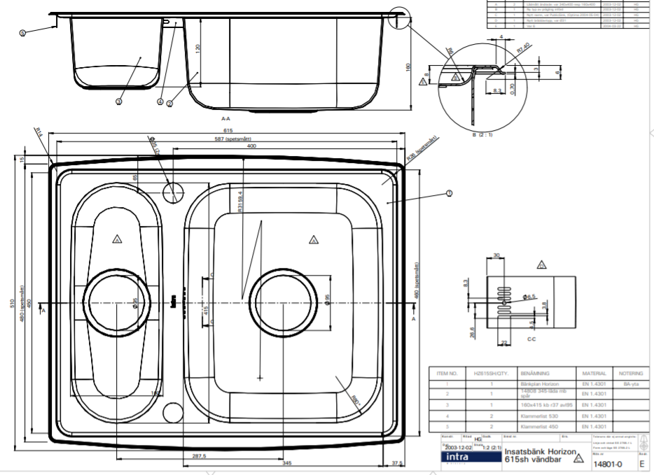 Intra Horizon 615x510mm med strainer. HZ615SH