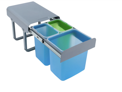 Fås med affaldsspande i forskellige farver og størrelser, som gør det muligt at tilpasse sorteringen efter individuelt behov.