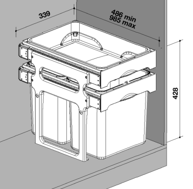 Intra Juvel Tank 40-4 affaldsbeholder med 4 spande og udtrækebakke