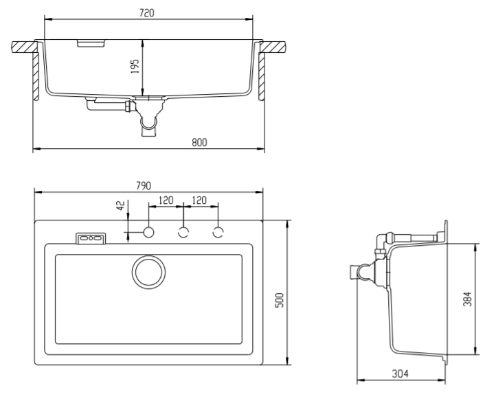 Intra Primus Alpina køkkenvask 790x500mm. N-100XL. sort Granit