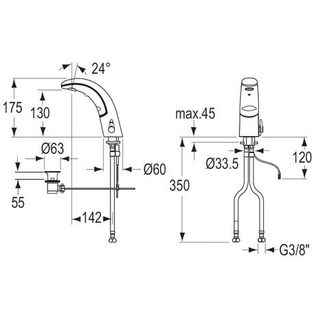 Berøringsfrit håndvaskarmatur med temperaturvælger og batteri, uden løft op ventil.