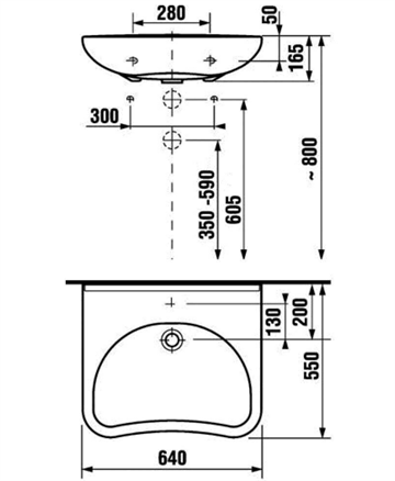 Laufen Mio hospitalsvask 640 x 550 cm til boltemontering