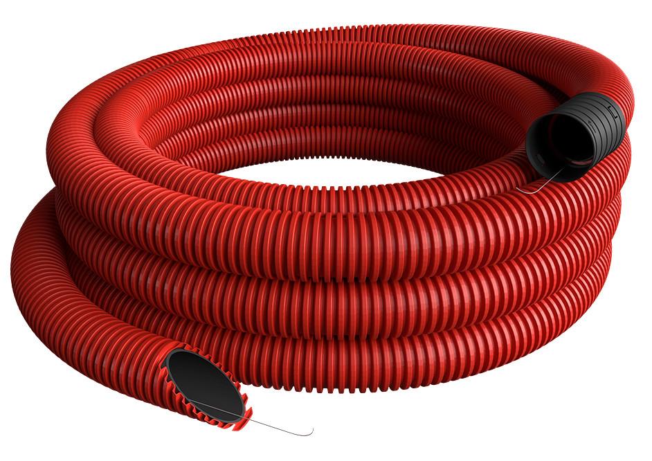 Fleksibel kabelrør for nedlægning i jord til beskyttelse af kabler med brudstyrke 450 N / 20 CM. Dette rør anvendes fortrinsvis i installationer udendørs eller til nedgravning i jord. Må ikke oplægges udendørs uden UV beskyttelse.