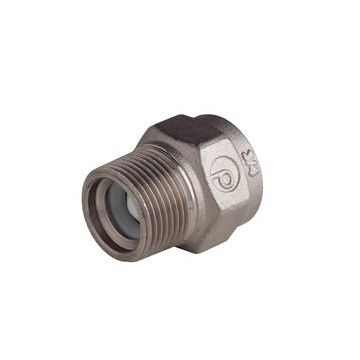 Pettinaroli kort kontraventil 3/4" M/N med korrosionshæmmende TEA-belægning. Flowretning fra nippel mod muffe-side.