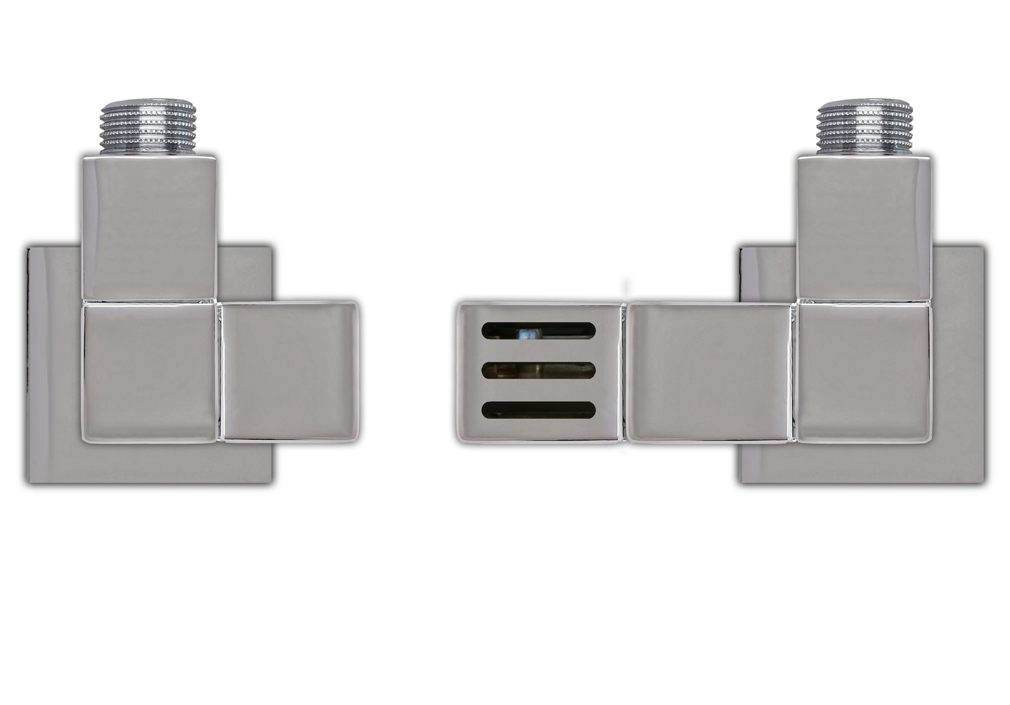 4K2 Rum Plus, ½" vinkelløbende ventilsæt i frikantet design med rumtermostatføler, forkromet. 4K2 ventilsættet er designet til tørrere i firkantet design. Passer perfekt til Manisa, Upper og Zenit. Ventilsættet er komplet med firkantede vægflanger, ½" tilslutningsrør samt firkantede kapper til tilslutningsrørene. OBS! Fremløb i højre side. Regulering i højre side. Ikke vendbar.