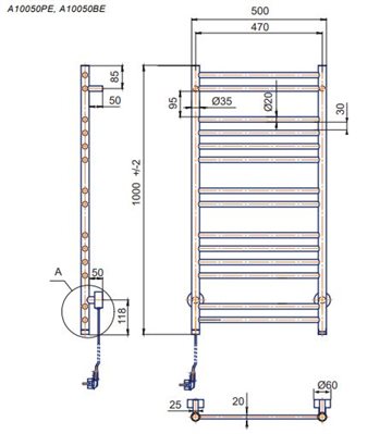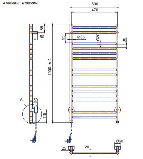 Kriss Apollo Plan El-Håndklædetørre i krom  - 1000 x 500 mm