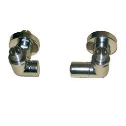 Corner Manuel, ½" vinkelløbende hjørneventilsæt med manuel regulering, forkromet. Ventilsættet er inkl. ½" tilslutningsrør samt rosetter til væggen – alt i ét varenummer. Fremløb i højre side. Er vendbar.