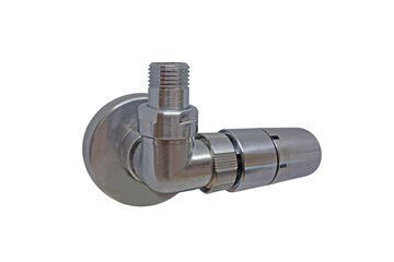 Corner Rum Plus, ½" vinkelløbende hjørneventilsæt med A-klassificeret rumtermostatføler, børstet. Rumtermostaten er testet af TELL og klassificeret i energiklasse A. Ventilsættet er inkl. føler, ½" tilslutningsrør samt rosetter til væggen – alt i ét varenummer. Fremløb i venstre side. Føler skal sidde i venstre side. Ikke vendbar.