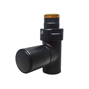 Cylinder Manuel, ½" ligeløbende ventilsæt med manuel regulering, lakeret matsort (RAL9005). Tilslutningsgevind nedad: Indv. ½". Det er valgfrit om man vil have fremløb i højre eller venstre side. Regulering skal sidde på fremløbet.