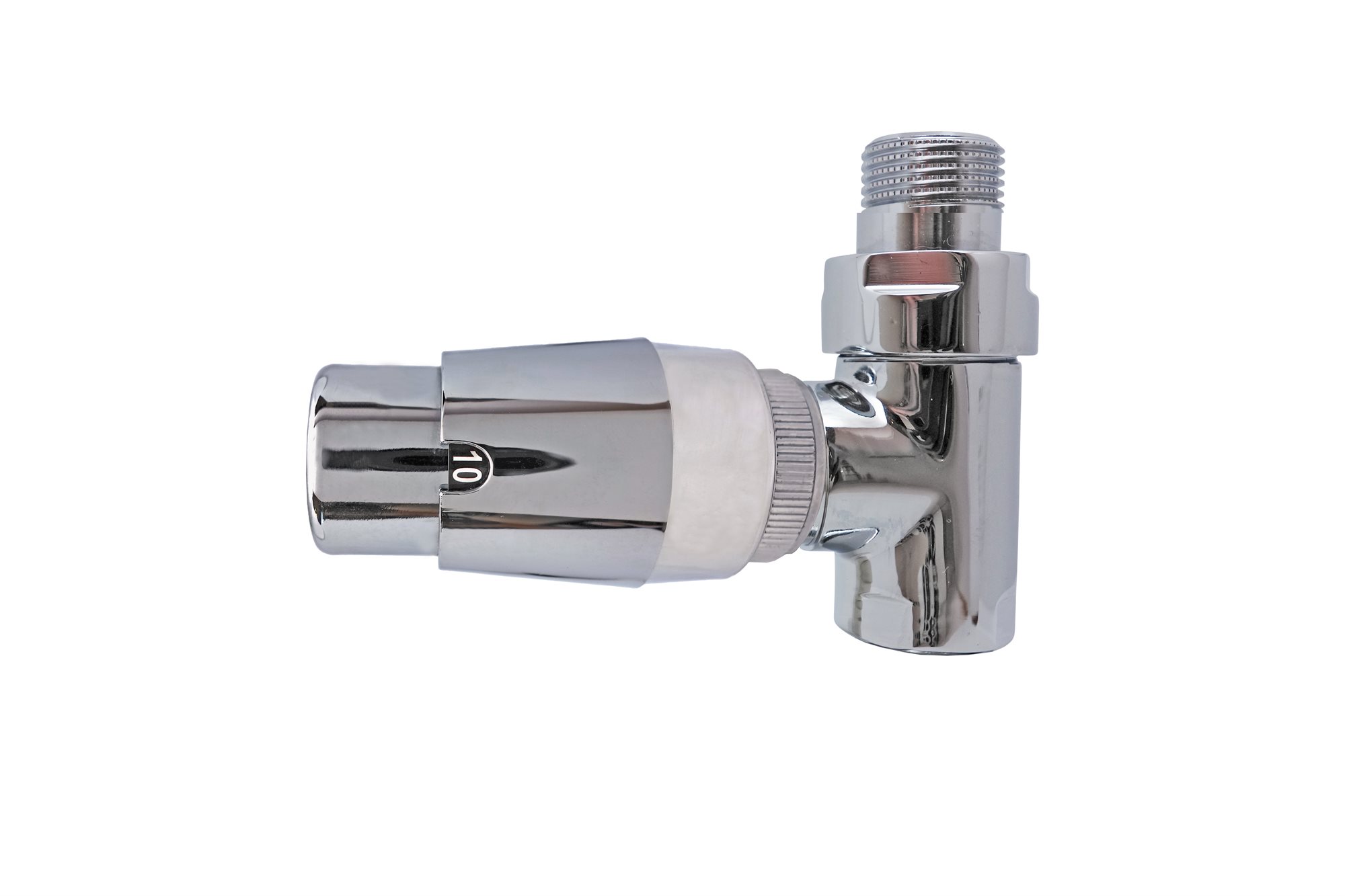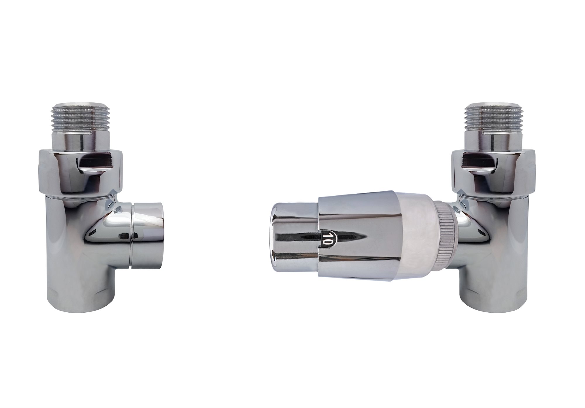 Cylinder RTL, ½" ligeløbende ventilsæt med manuel regulering, forkromet. Tilslutningsgevind nedad: Indv. ½". Det er valgfrit om man vil have fremløb i højre eller venstre side. Regulering skal sidde på returløbet.