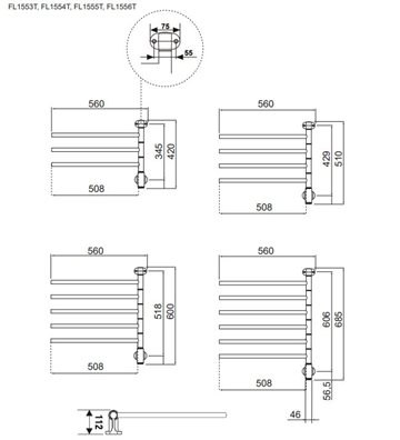 Kriss Flex 1 El varmer inkl. Momento m/timer og 4 svingbar arme, krom