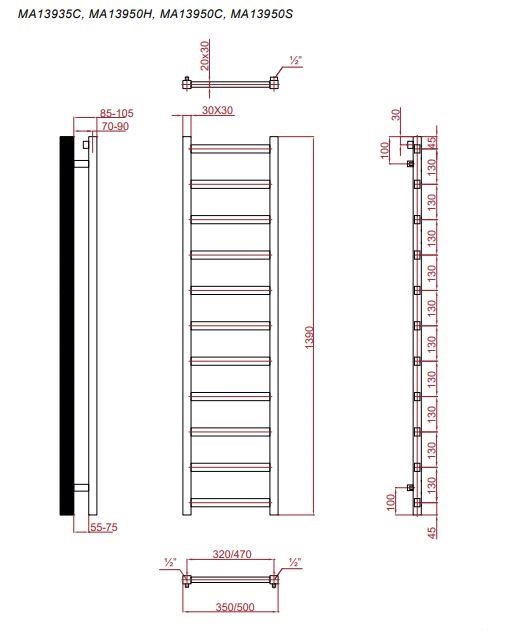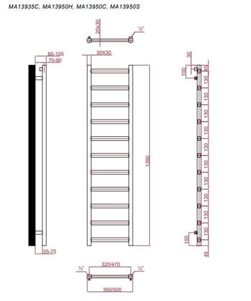 Kriss Manisa håndklæderadiator 1390x350mm krom