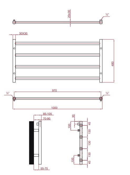 Kriss Mansia håndklædetørre 480 x 1000 mm i krom
