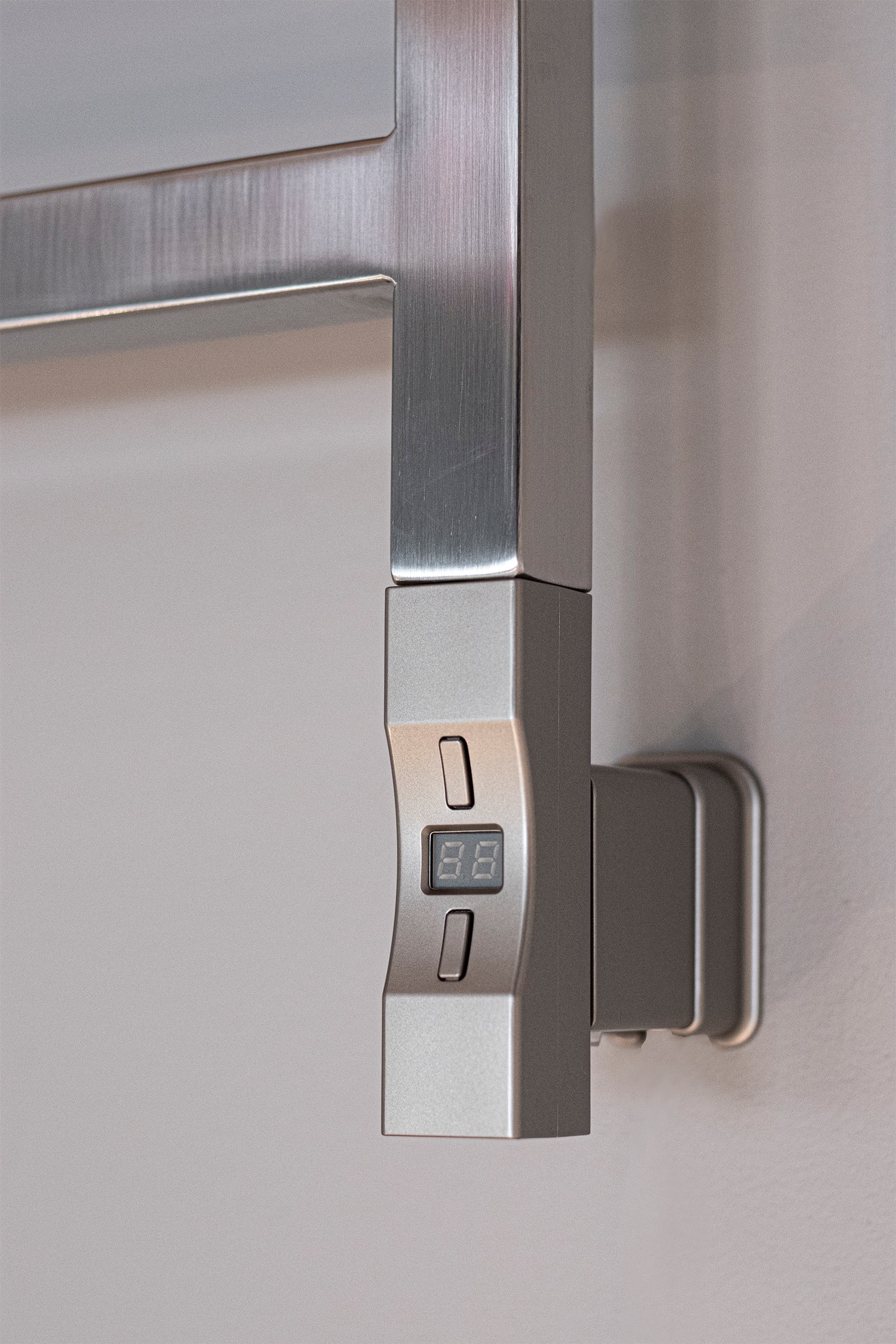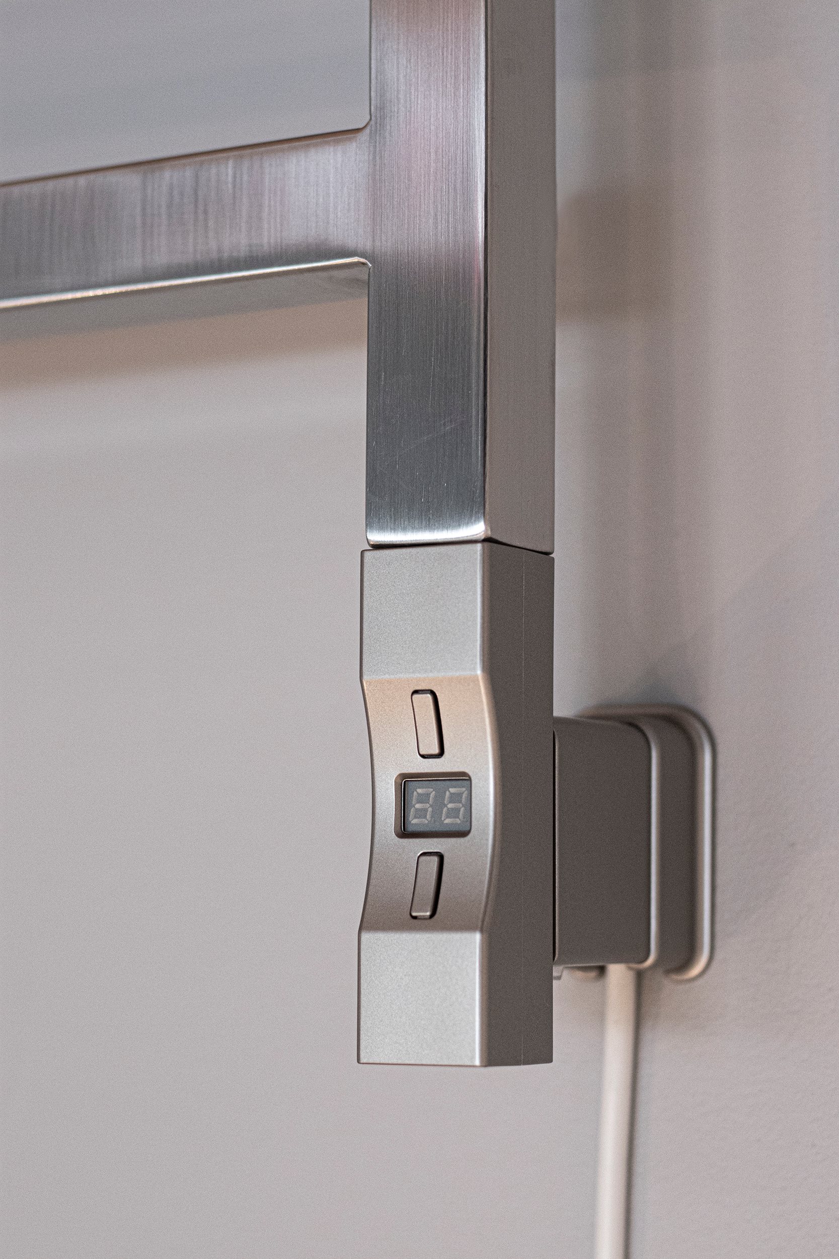 Nuvo 2 elvarmeelement med firkantet profil & boostfunktion, 600 watt, steel look Passer til alle tørrere med lodrette, firkantede rør med ½", lodrette gevind. På Nuvo 2 kan du på displayet indstille tørrerens vandtemperatur mellem 10-65C og derved opnå netop den overfladetemperatur, der passer netop dig. Aktiver nemt boostfunktionen i 1, 2 eller 3 timer, hvorefter den går tilbage til den temperaturindstilling du havde før.
