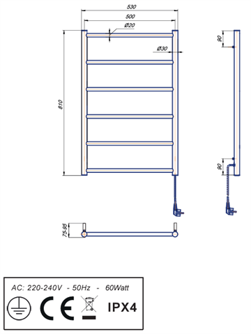 230V – 50Hz – isolationsklasse 1, IPX4.
