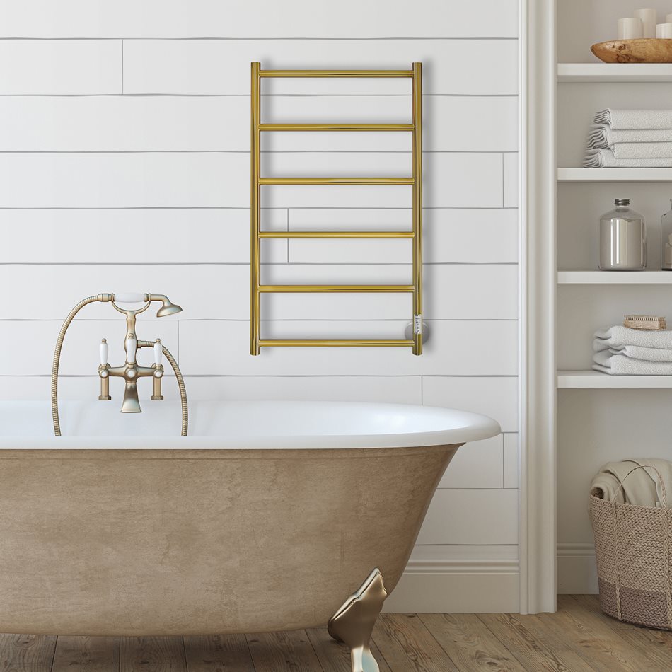 Kriss Odesa elektrisk håndklædetørrer 810 x 530 - Børstet messing / Guld