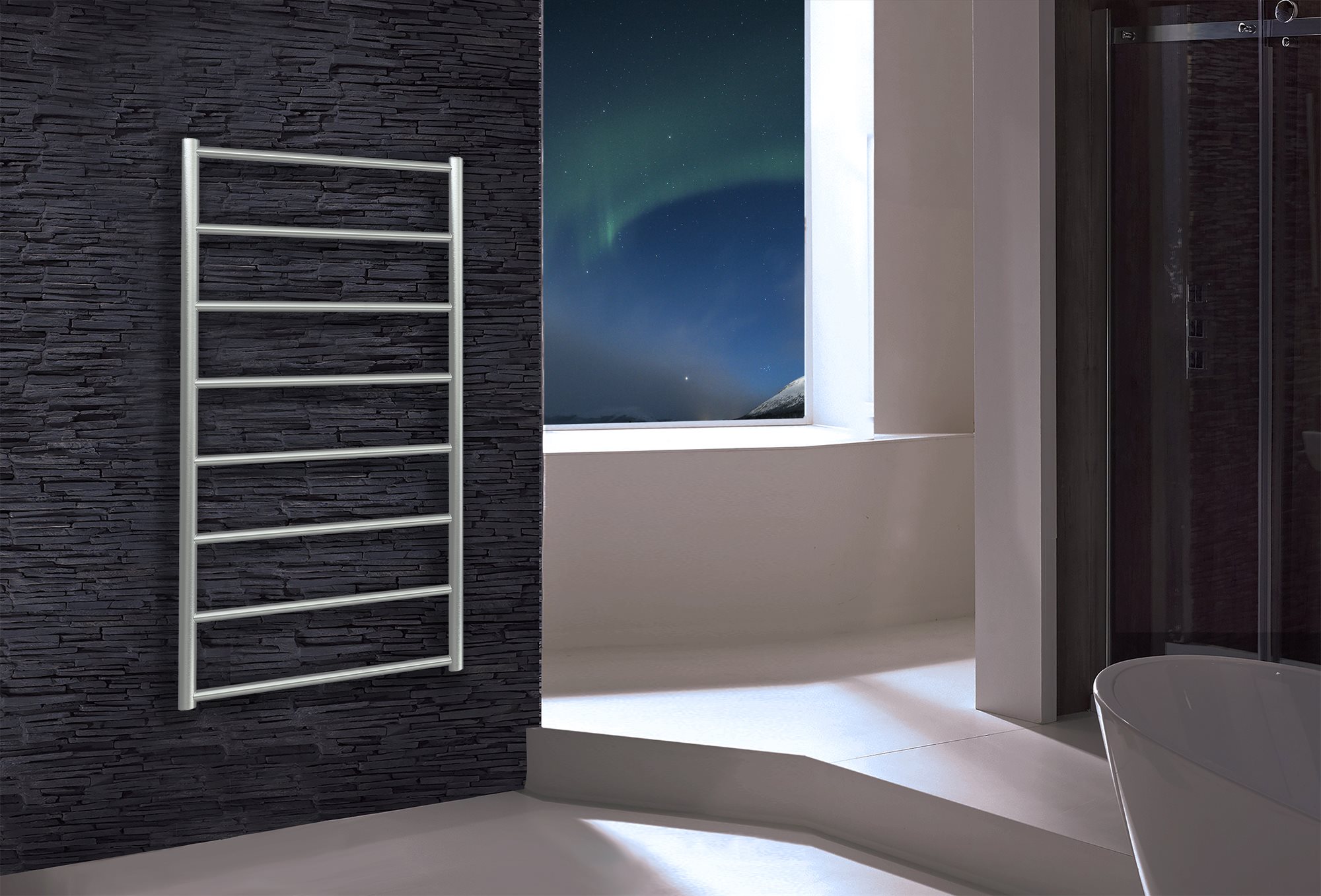 Kriss Polaris karakteriseres ved sin elegance og slanke design, hvor de jævnt fordelte tværgående rør er i fuld harmoni. Et stilsikkert valg, der vil pryde alle badeværelser. Serien leveres i krom, matsort lakeret stål (RAL 9005) samt i børstet rustfrit stål.