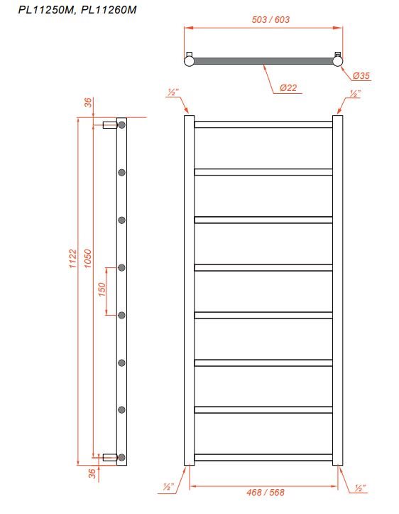 Kriss Polaris håndklæderadiator 1122x503mm børstet rustfrit stål