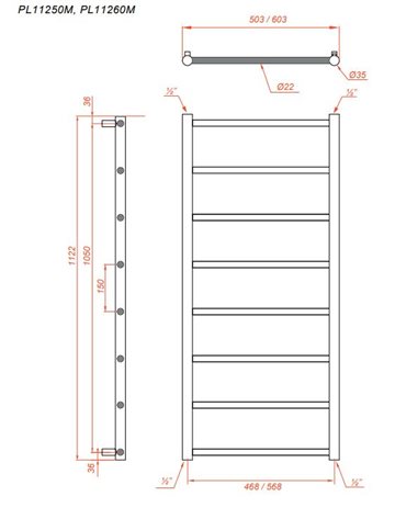 Mål (H x B): 1122 x 503mm