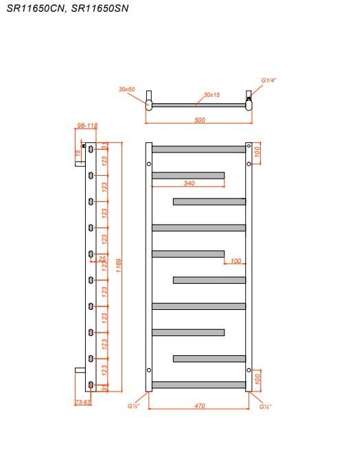 Mål (H x B): 1169 x 500mm