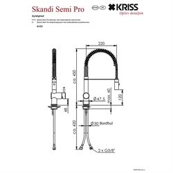 Kriss Skandi Semi Pro køkkenarmatur til bord børstet rustfrit stål
