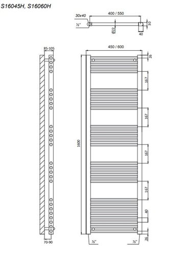Kriss Space Light håndklædevarmer 1600x450mm hvid