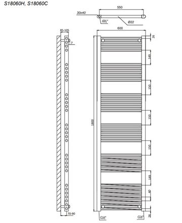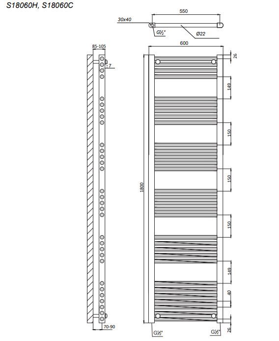 Kriss Space Light håndklædevarmer 1800x600mm hvid