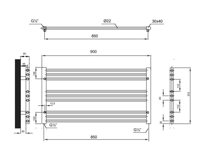 Kriss Space Plan håndklædevarmer 510x900mm krom