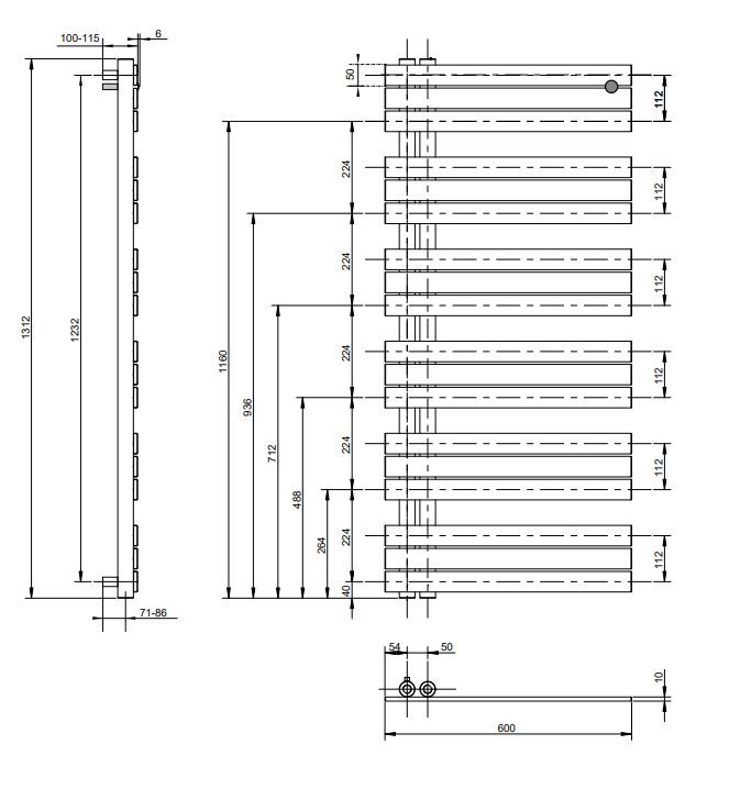 Kriss Stella håndklædetørrer 1312x600mm mathvid