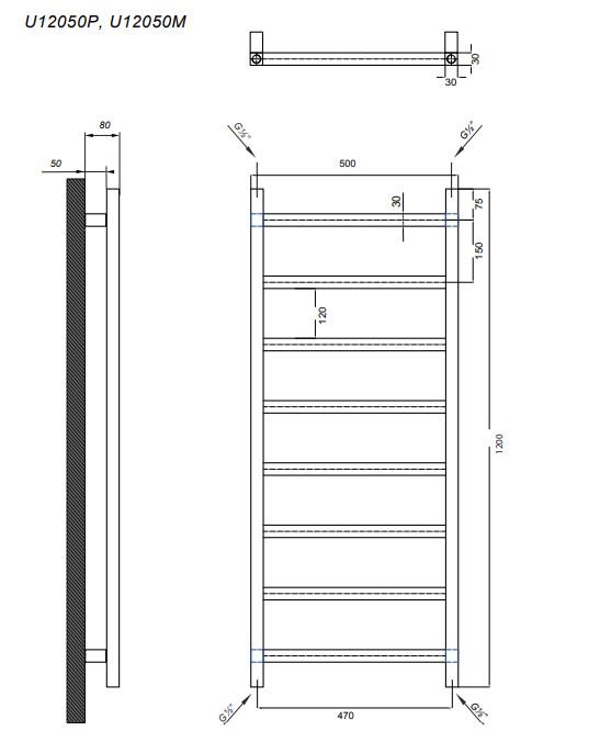 Kriss Upper håndklædetørrer 1200x500mm børstet rustfrit stål