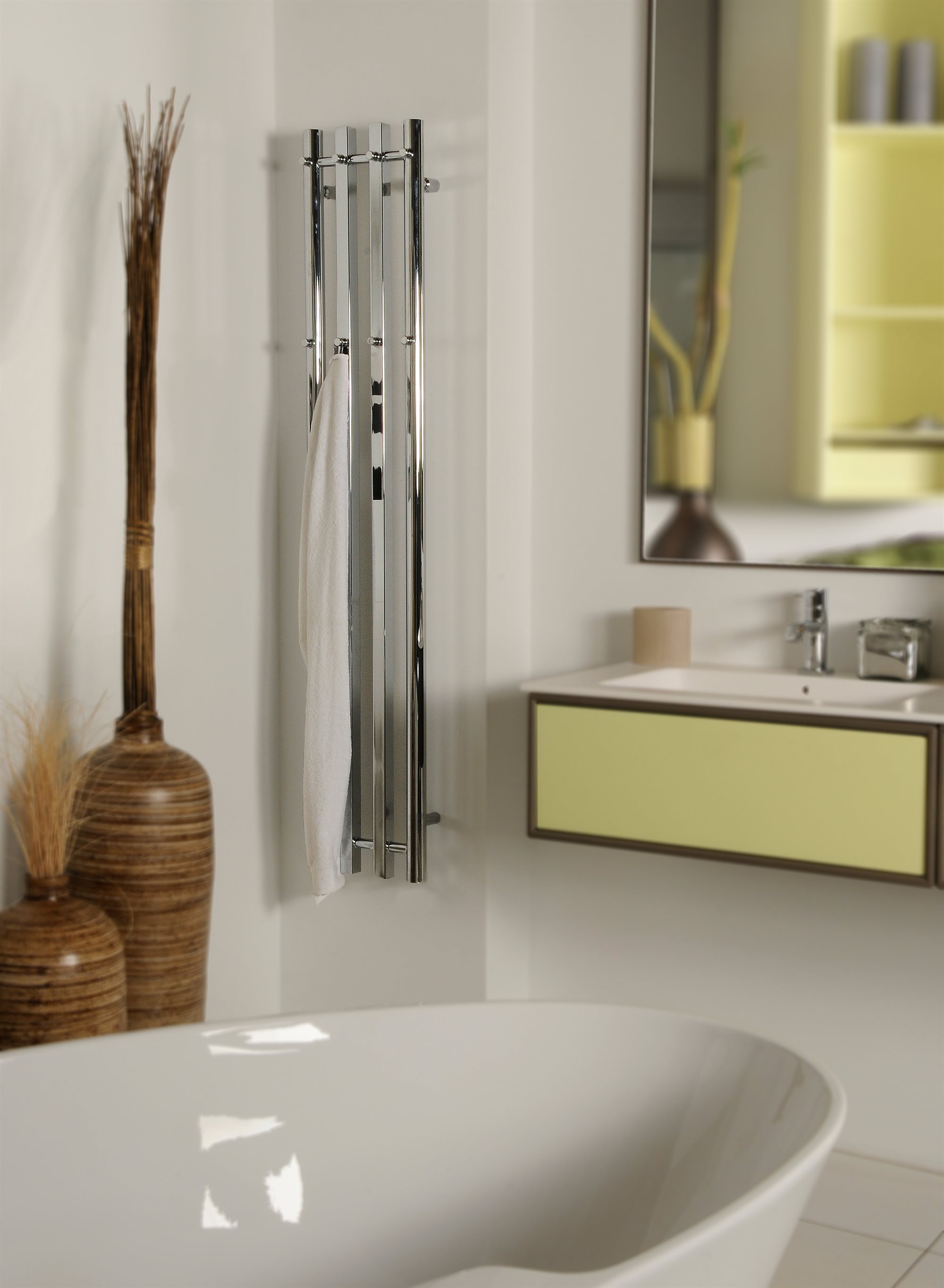 Den nye Zenit har et nyt og enestående design med både runde og firkantede rør, der gør denne model helt unik. Zenit har påsvejsede kroge, der gør det legende let at hænge håndklæderne op - selv for de mindste, da der er to sæt kroge.