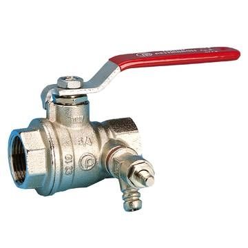 3/4" kuglehane med fuldt gennemløb og aftap, muffe/muffe, rødt stålhåndtag
