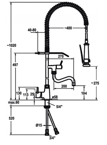 KWC Gastro Storkøkkenarmatur med 200 mm svingtud og forbruser, krom